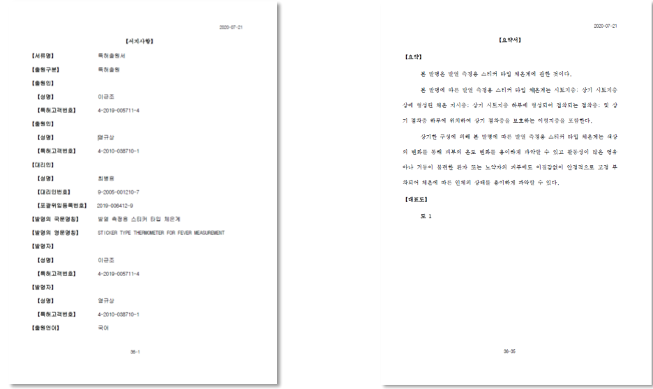 韩国专利编号No.10-2020-0090153“体温发烧测量的贴纸方式体温计”